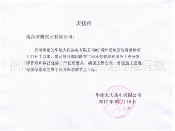 新疆昌吉電廠表揚信