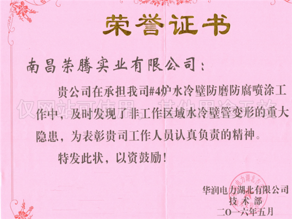 防磨防腐噴涂榮譽證書